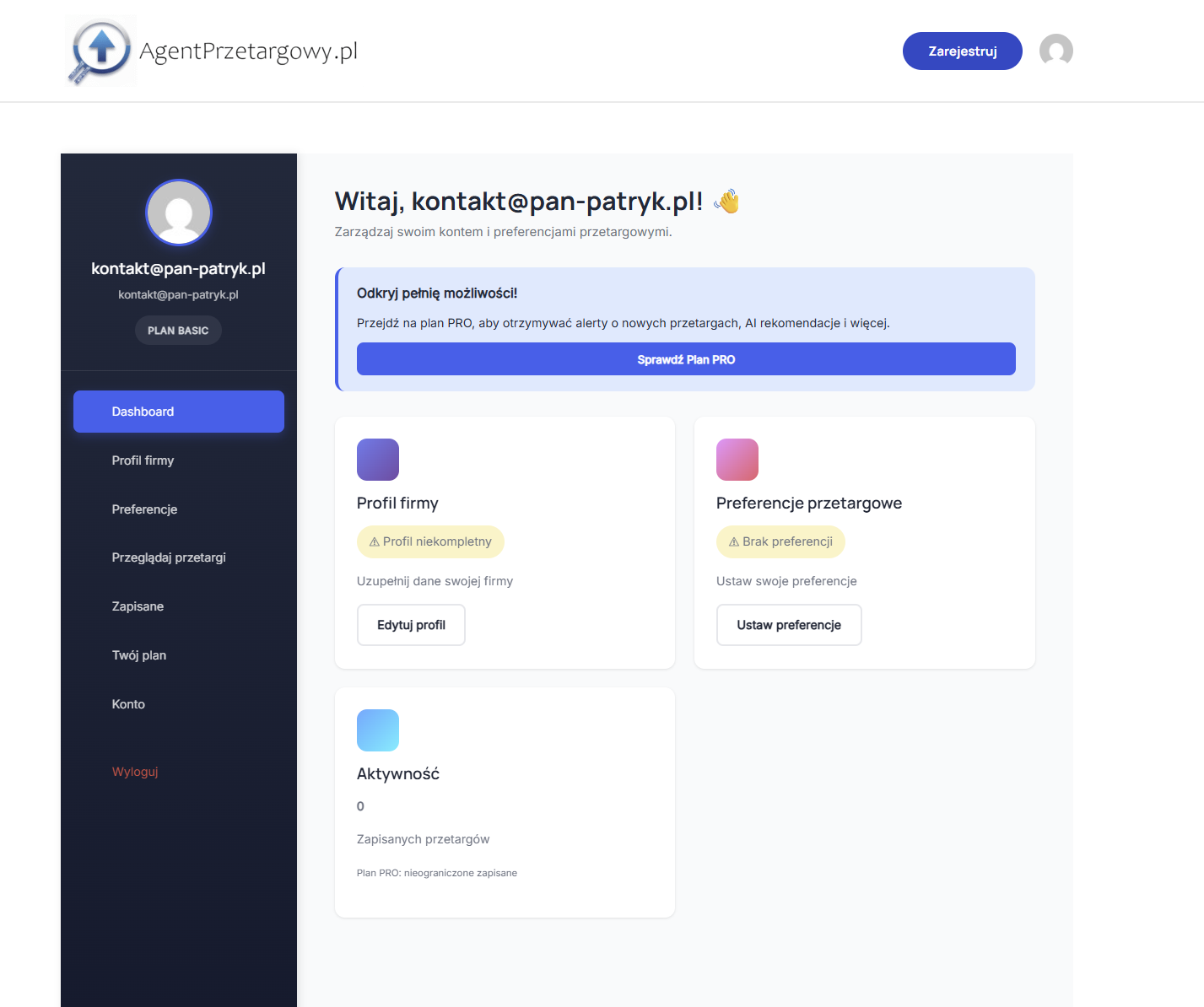 Pierwsza w Polsce platforma, która analizuje SWZ za Ciebie, ocenia ryzyko kontraktowe i automatyzuje proces ofertowania. Dołącz do zamkniętej wersji testowej.
